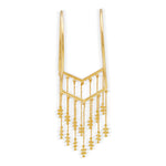 Part of the Souk collection, the Silsila Bracelet is a sculptural statement piece. Crafted in 22k gold-plated brass, it features a minimal open-ended cuff frame from which delicate chains cascade from both ends, capturing the layered textures and rhythmic interplay of form central to the collection.